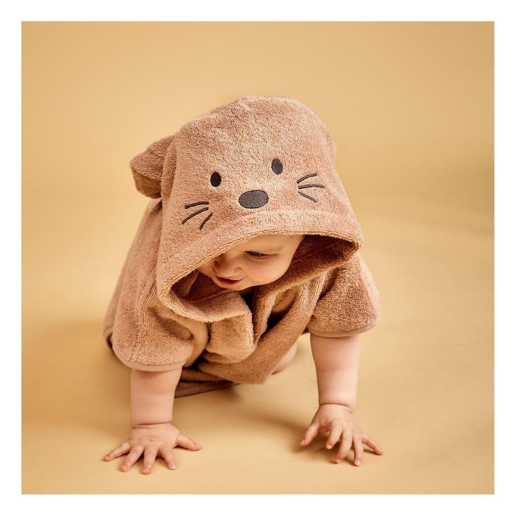 KINDERPONCHO VAN BIOLOGISCH KATOENSuperzachte poncho met geborduurd dierengezicht en oren op de capuchon. De poncho is gemaakt van 100% zachte biologische katoenen badstof, waardoor je kind droog en warm blijft. Kleur: Rose - KonijnKwaliteit: 100% biologisch katoenAfmetingen: 50x50 cm kleuren: Roze, Roségoud Materialen: Katoen merk: Nuuroo EAN/streepjescode: 5715235010018 SKU: NU229-Rose - Rabbit