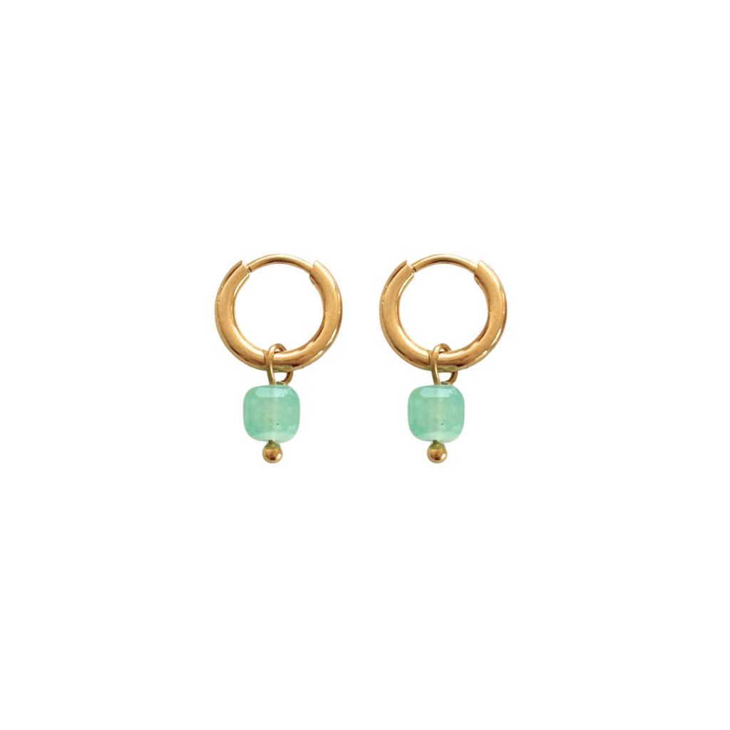 Amazoniet Kubus Oorringetjes, gemaakt van stainless steel. Elegant, minimalistisch en met een prachtige sparkle. Perfect voor elke dag én elke gelegenheid.