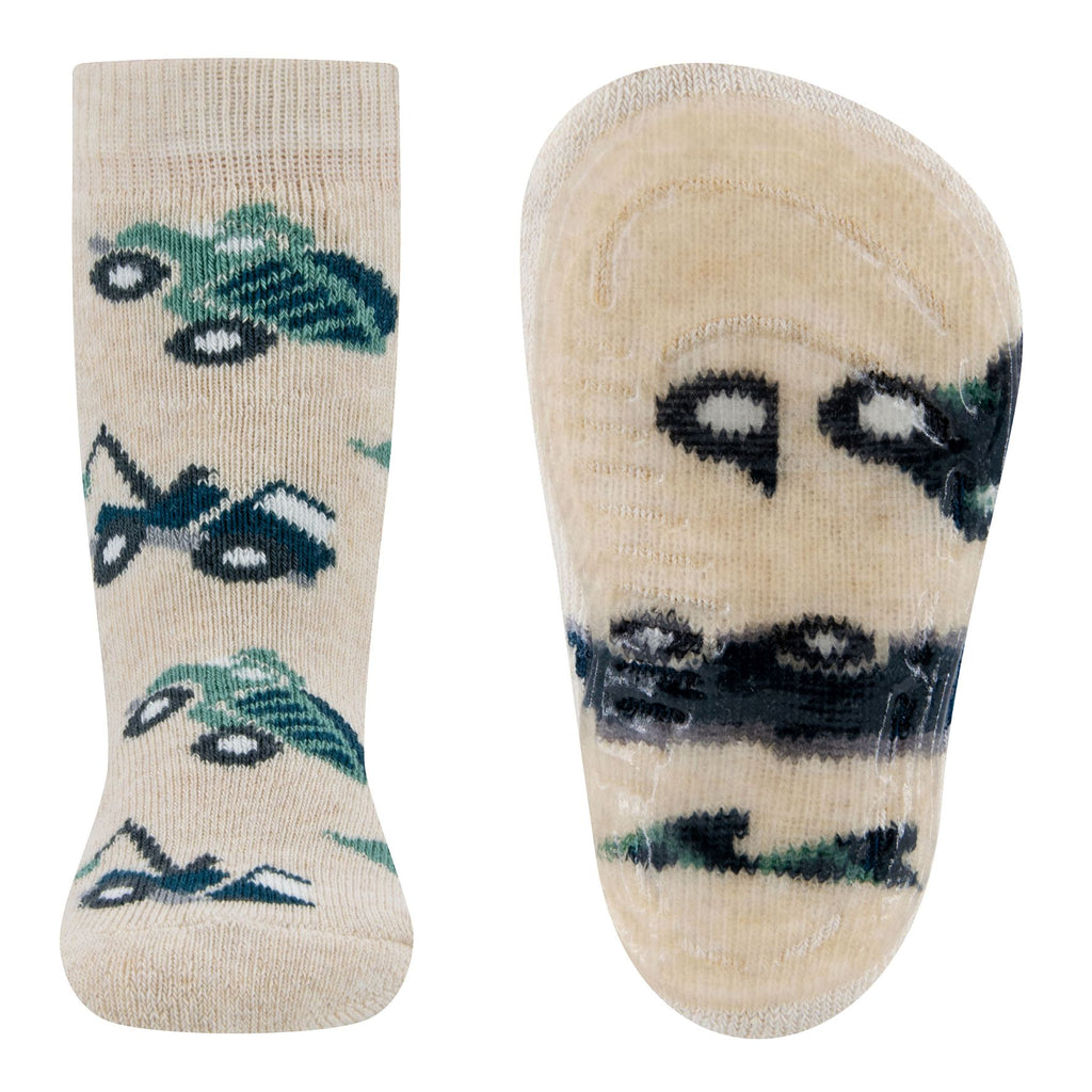 Heerlijk warme soksloffen van Ewers met kiepwagenprint. Transparante anti-slipzool.