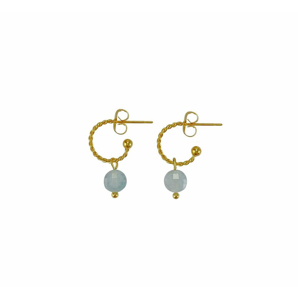 Stainless steel gedraaide oorringetjes met een Aquamarijn edelsteentje. Het steentje heeft een chique uitstraling doordat het facet geslepen is. Het steentje sprankelt vanuit elke hoek.