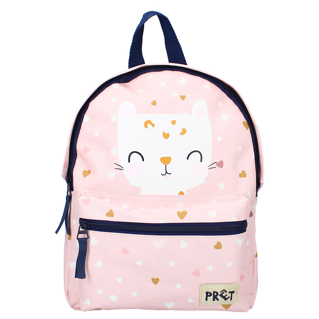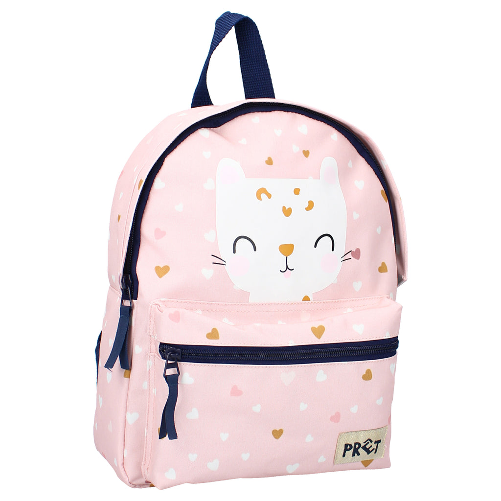 Een goede dag begint met een glimlach. En hoe tover je die bij je kindje nou makkelijker op het gezicht dan met deze schattige rugzak van Prêt? De roze tas heeft zwarte accenten. Het meest opvallend is natuurlijk de schattige poes boven het handige voorvak. Het hoofdvak van de rugzak is ruim. Hierin past met gemak een broodtrommeltje om mee te nemen naar school. De comfortabele schouderbanden van de tas zijn verstelbaar. Eenmaal op school hangt je kindje de tas makkelijk op aan de lus aan de bovenkant.